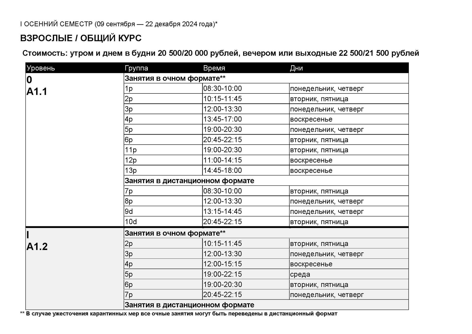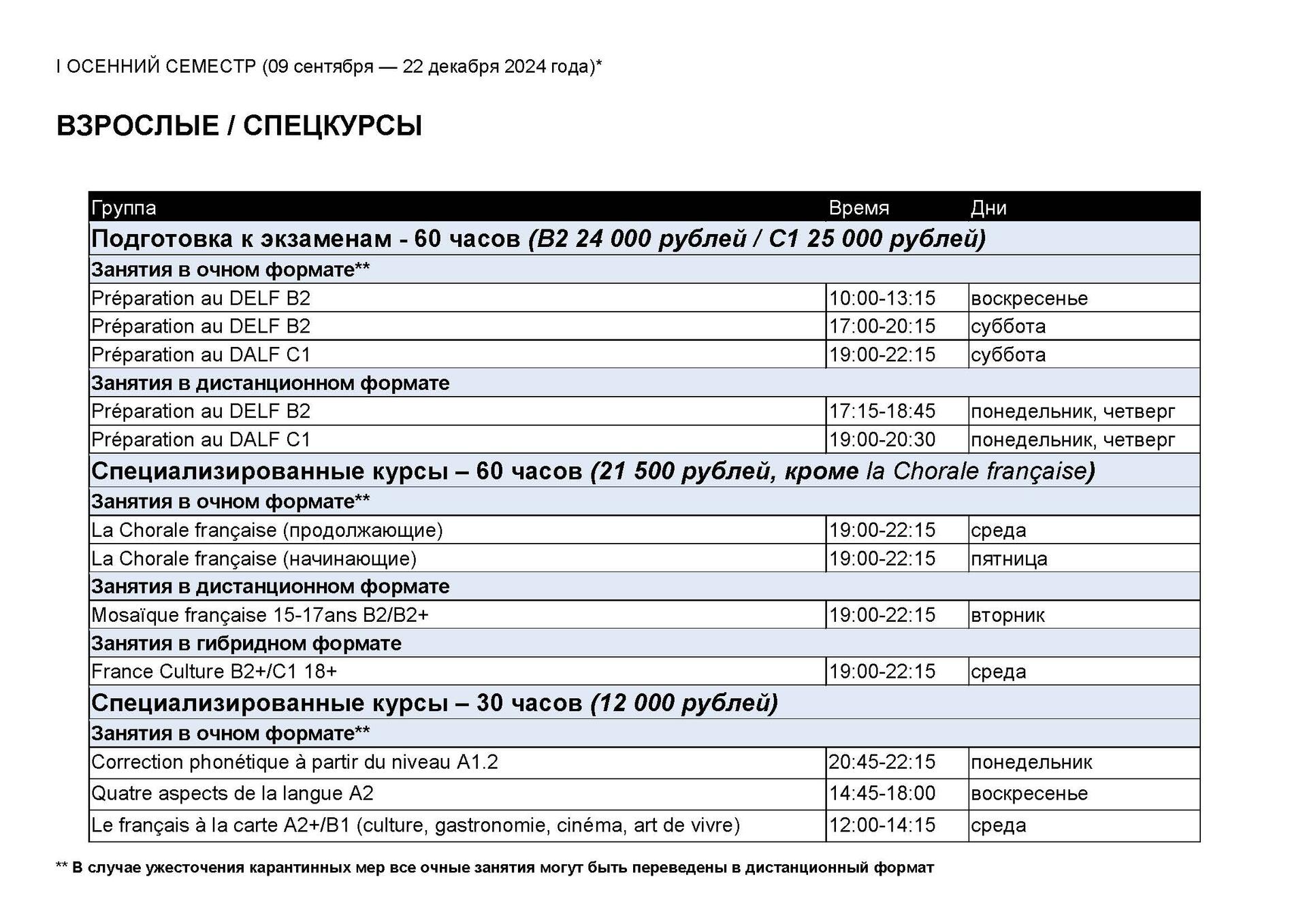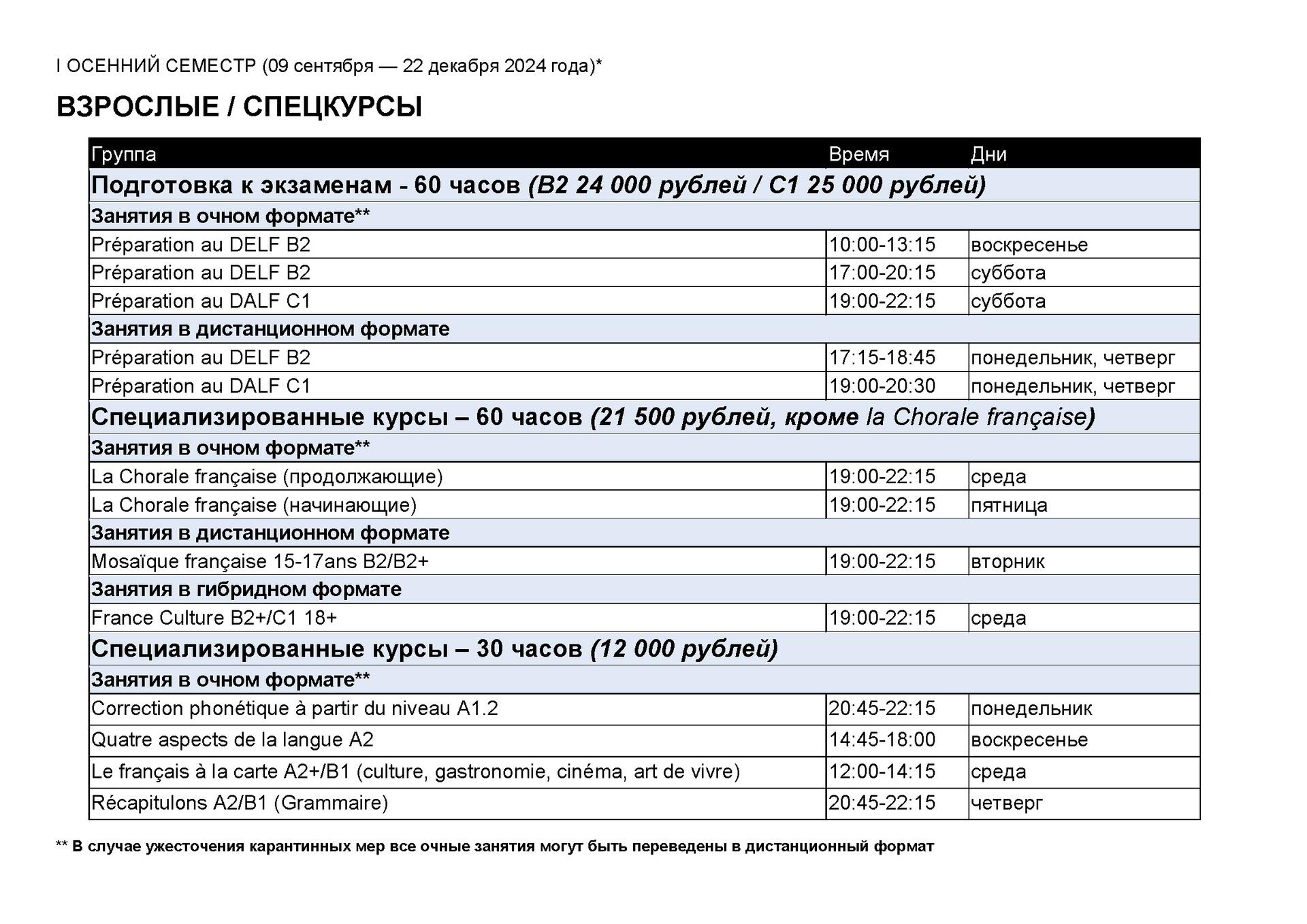 I ОСЕННИЙ СЕМЕСТР / ВЗРОСЛЫЕ
