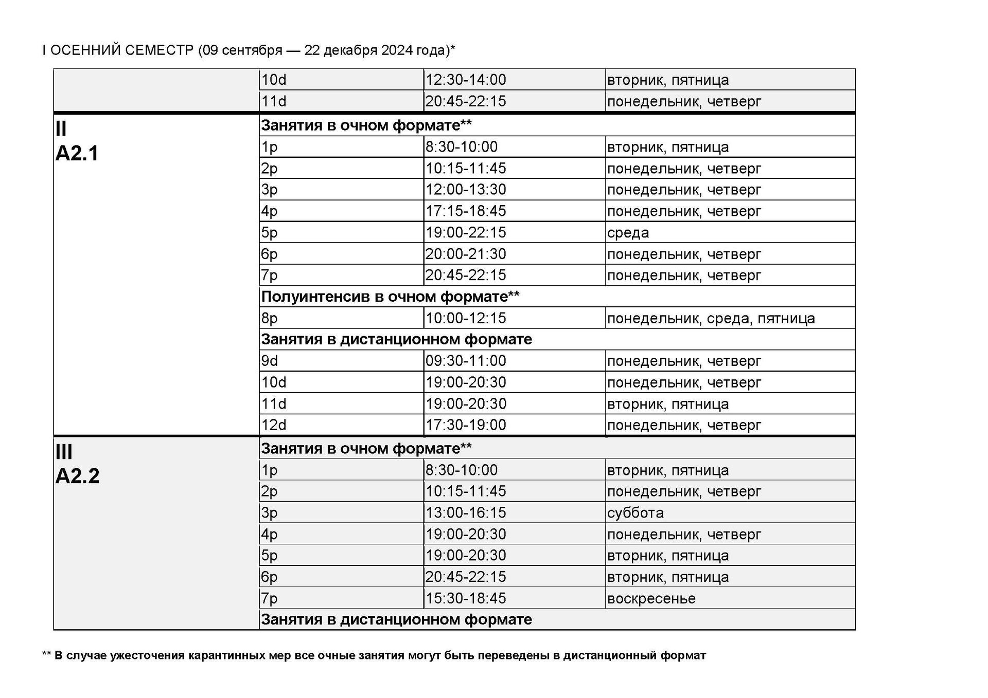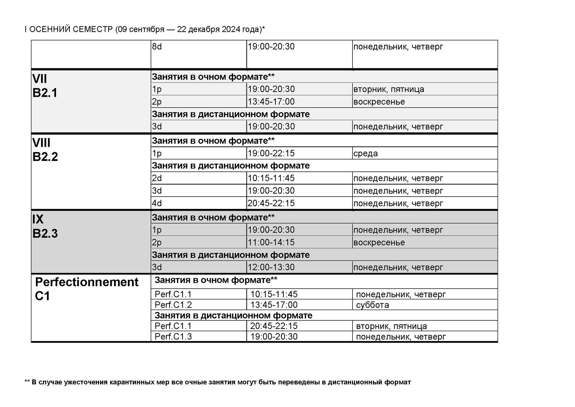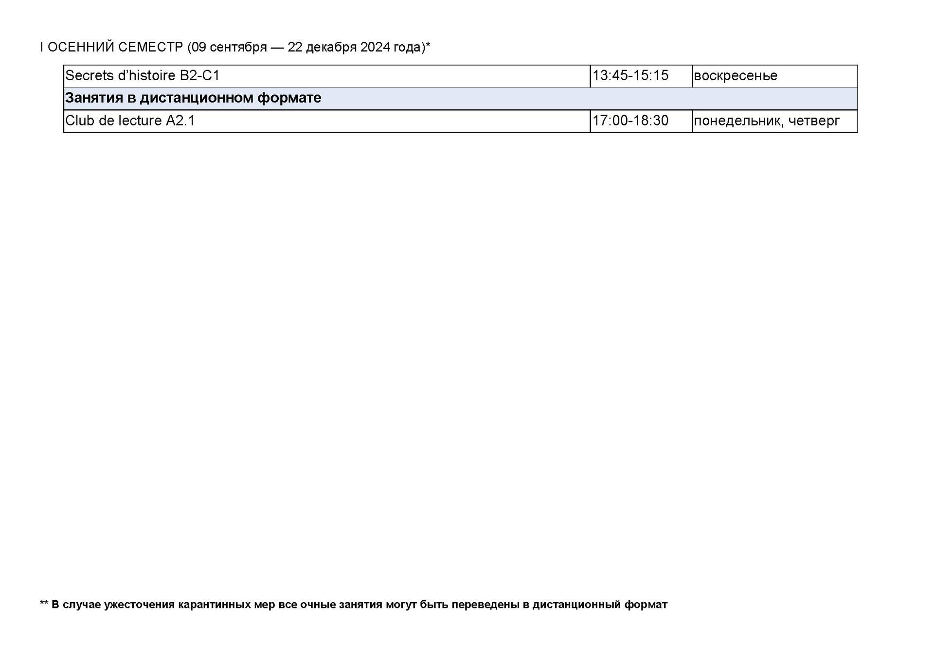 I ОСЕННИЙ СЕМЕСТР / ВЗРОСЛЫЕ
